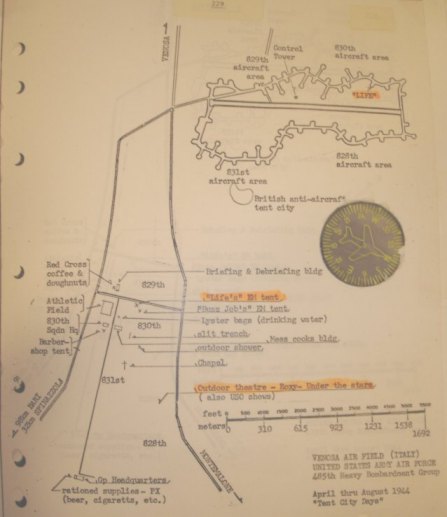 Non conoscendo la fonte presa in considerazione dal citato testo ci limitiamo a fornire la nostra informazione nella speranza che sia utile agli autori in una eventuale revisione ed ampliamento del testo. Ma intanto è certo che la 15(th) USAAF (americani, United State Air Force) ed il 205 Group della RAF (inglesi, Royal Air Force) scelgono Venosa (PZ) per impiantare una delle basi aeree per le operazioni Militari. A Venosa si insedia la 485(th) BG (Bomber Group), l’unica in Basilicata. In Puglia erano invece presenti molte altre base, in quanto pianeggiante, dal Gargano a Lecce, e perfino una presso Taranto, a Manduria. Si osservi la mappa per le altre basi